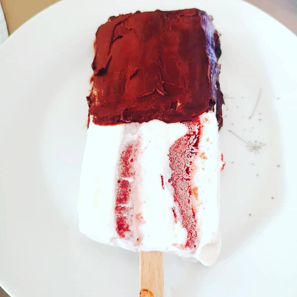 Não façam como eu, não usem uma caixa gigante para fazer os gelados. Vejam a largura da caixa de acordo com os paus que têm. Foi o meu erro foi ter feito gelados Maxi, depois para a cobertura não correu bem, porque ficaram muito pesados. Se não tiverem paus de gelado podem sempre meter no prato.