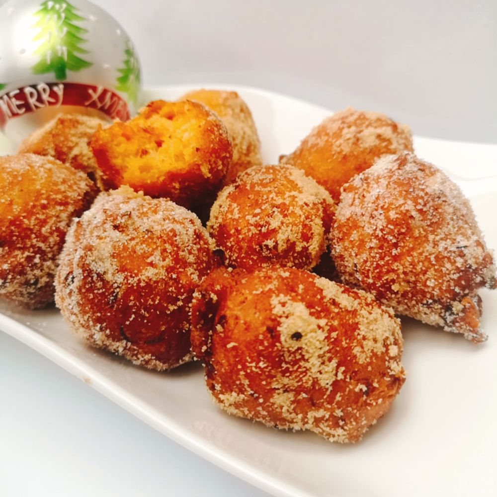 Christmas dreams are fried, round and have a golden exterior color and a yellowish interior of pumpkin or carrot. Its typical ingredients include milk, lemon peel, salt, wheat flour, eggs and oil for frying. In order to eat here at home, I turned a basic recipe into a vegan recipe.