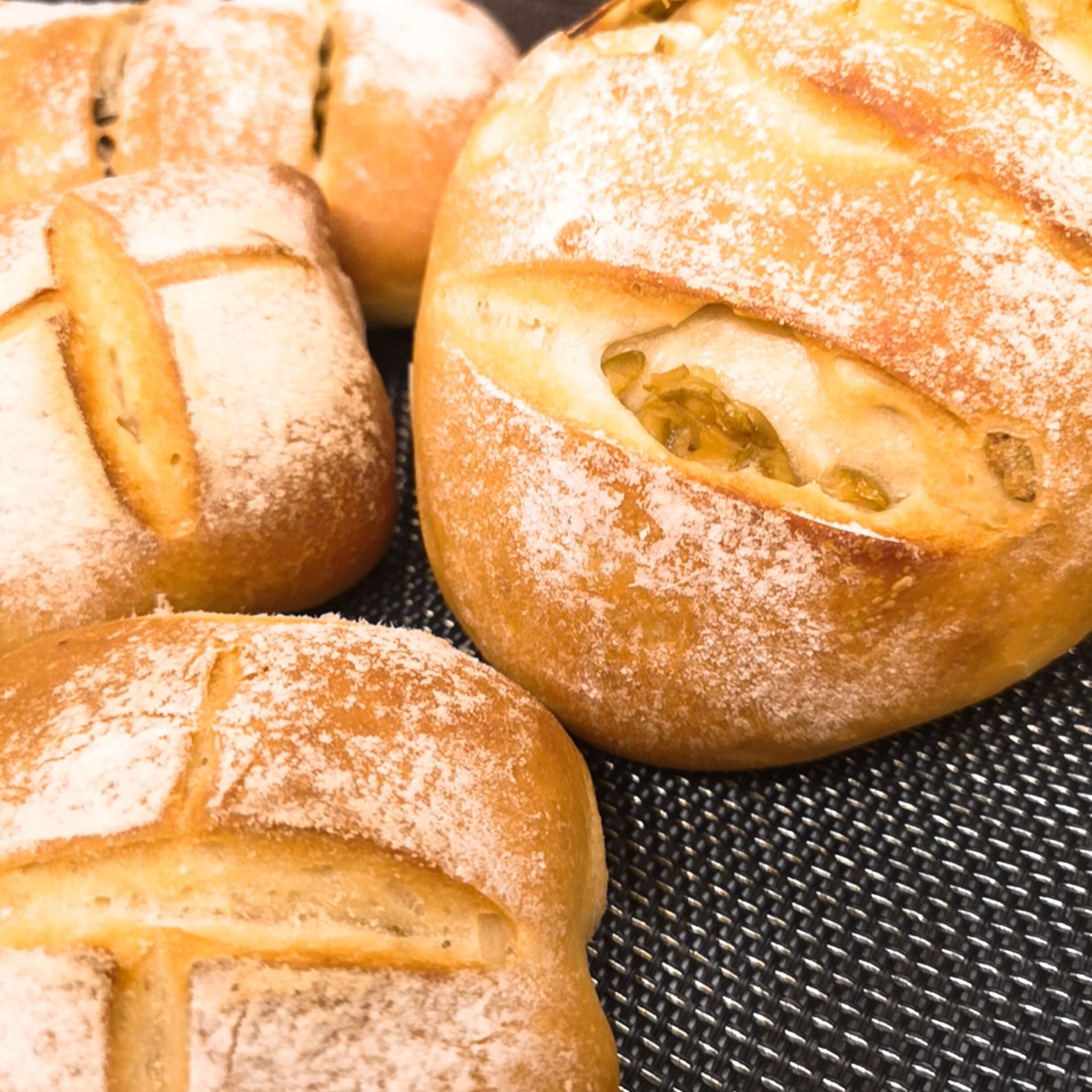 I ended up making three versions to please Greeks and Trojans. Some simple breads for Lucas and Matilde, some with olives and seeds and others only with olives. It wasn’t long before they were just a memory. The dough is simple and with only five ingredients and then the olives and seeds for the interior.