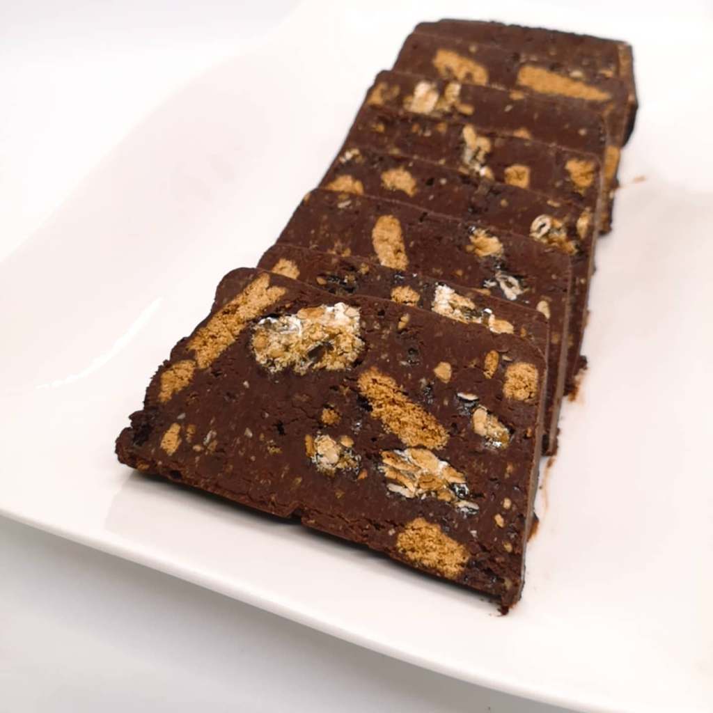 Salame de chocolate é um doce tradicional Português e Italiano, feito com chocolate, bolachas, manteiga, ovos e vinho do porto.